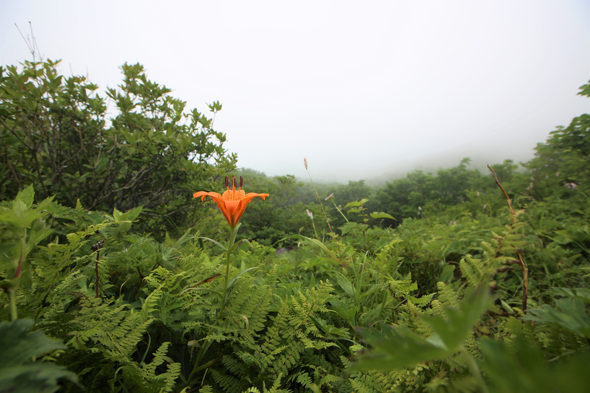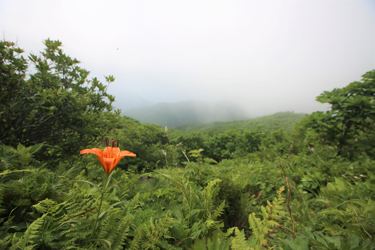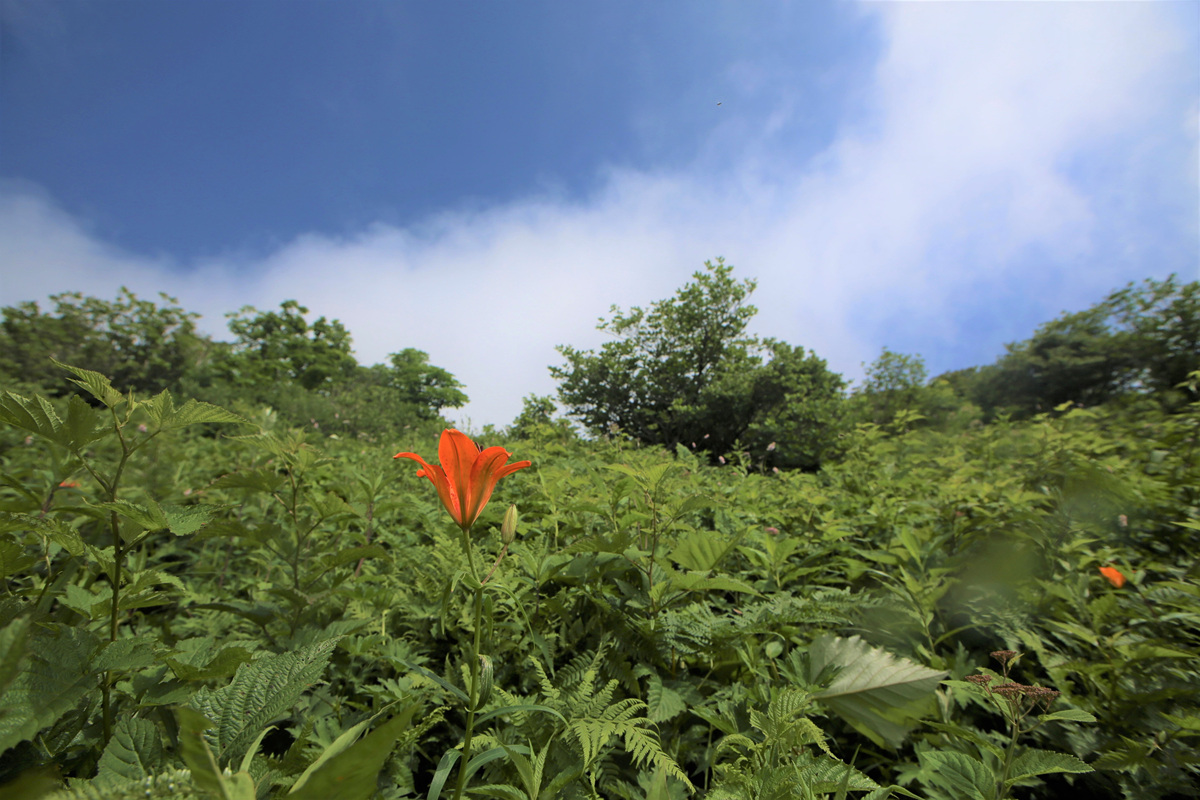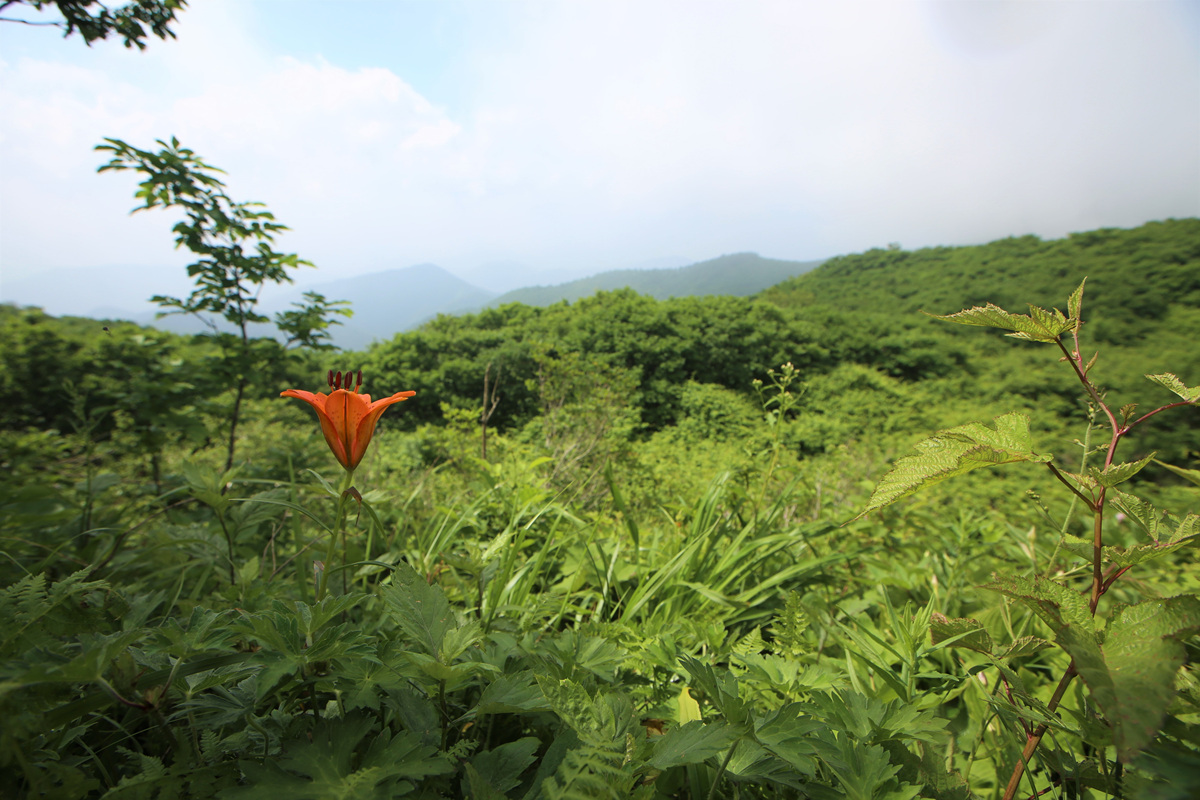 푸르른 고산 정상부에 붉은 색감으로 화려하게 수놓은 날개하늘나리는 참 예뻤다