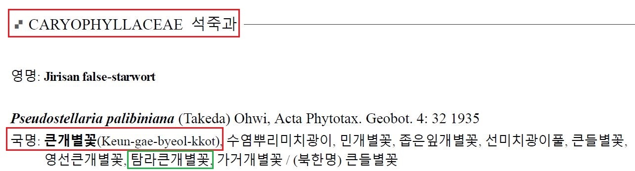 ...탐라큰개별꽃은 큰개별꽃의 이명으로 등록됨